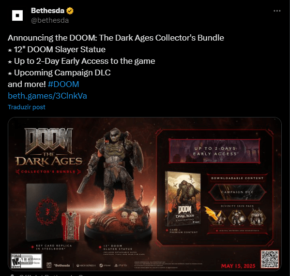 A Bethesda anunciou as várias edições físicas e digitais disponíveis para pré-encomenda de Doom: The Dark Ages.