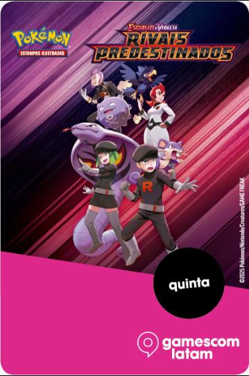 A arte dos pacotes de Rivais Predestinados, o novo conjunto do Pokémon TCG que será lançado em maio, foi antecipada em crachás que serão distribuídos durante a gamescom latam. Os documentos de credenciamento apresentam o logotipo em português do Brasil, confirmando o nome do set aqui.