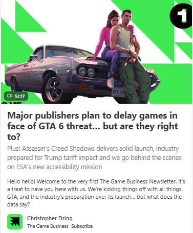 Uma terceira editora AAA com sede na Europa disse à TGB que sua maior preocupação é se o GTA for lançado no final de outubro ou no início de novembro, dando-lhe pouco espaço para manobrar seus próprios títulos.