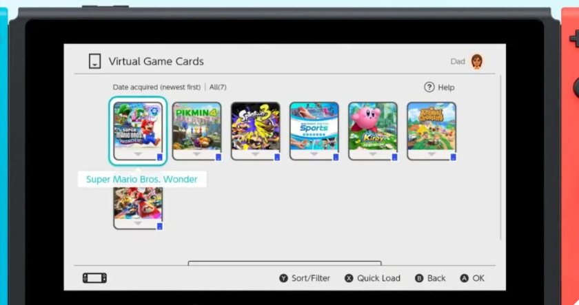 Após a atualização, os jogos digitais no Switch aparecerão como Virtual Game Cards em uma tela dedicada, onde os usuários podem “carregá-los” ou “ejetá-los” de sua biblioteca, como se fossem cards físicos, sejam eles de um membro do mesmo grupo familiar da Conta Nintendo ou de um segundo console vinculado à sua conta.
