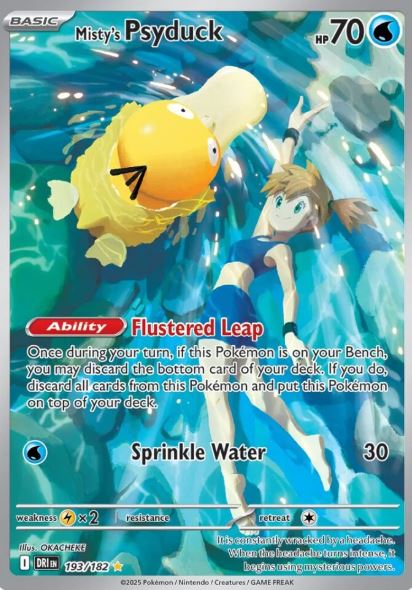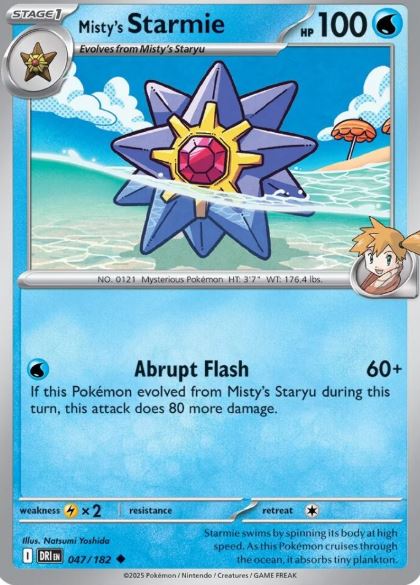 No próximo conjunto Destined Rivals, os fãs terão a chance de colecionar Staryu da Misty, Starmie da Misty, Magikarp da Misty e Psyduck da Misty.