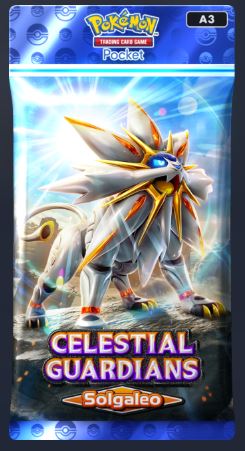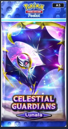 Guardiões Celestiais será lançado oficialmente em 30 de abril e é uma expansão maior que as duas anteriores, com dois tipos diferentes de pacotes de reforço temáticos dos lendários Solgaleo e Lunala. Apresenta principalmente Pokémon de Alola, incluindo os três iniciais Rowlet, Litten e Popplio, além de variantes regionais, como Raichu e Marowak de Alola. E, claro, traz novas cartas de treinador, temáticas de personagens populares da região de Alola, e novas maneiras de exibir sua coleção, como uma nova capa de fichário e um novo quadro de exposição.