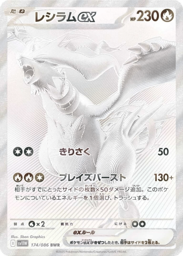 Embora cartas inteiramente douradas sejam comuns, cartas inteiramente de uma cor diferente de dourado são extremamente raras. Não está claro se outros Pokémon lendários dos jogos Pokémon Black and White também receberão uma carta BWR.