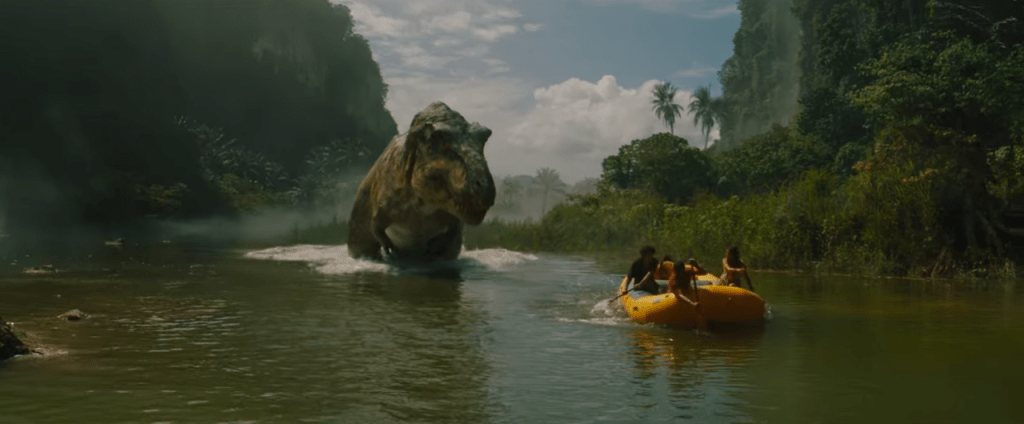 Então, o que vemos neste trailer final? Os destaques incluem a cena do rafting no rio de Jurassic Park, de Michael Crichton. Em janeiro, Koepp discutiu uma sequência do primeiro romance de Jurassic Park que não foi incluída no filme seminal de Jurassic Park, de 1993. Koepp disse que releu os romances de Jurassic Park, de Michael Crichton, para voltar ao jogo, visto que não há um romance de origem para esta sequência. Como resultado, Koepp “tirou algumas coisas deles”, e uma dessas coisas é uma sequência do primeiro romance que não foi utilizada até agora. “Havia uma sequência do primeiro romance que sempre quisemos no filme original, mas não tínhamos espaço para ela”, revelou Koepp. “Pensamos: ‘Ei, podemos usar isso agora.’”