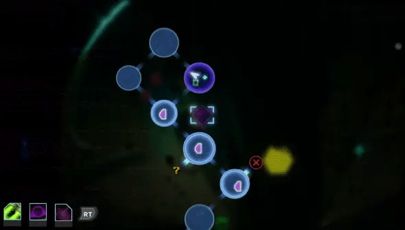 Os dois pontos de contato mais próximos para o ciclo de jogo de Galactic Glitch são o icônico “Roguevania” Dead Cells e o mais novo shmup roguelike de bullet hell Star of Providence. Assim como Star of Providence, cada uma das diferentes salas de Galactic Glitch é um espaço pequeno e independente no qual os jogadores precisarão manobrar em torno de projéteis inimigos enquanto tentam eliminar os alvos o mais rápido possível. Mas os caminhos ramificados de cada sala, bem como a existência de melhorias desbloqueáveis para as naves que abrem caminhos ramificados para novos biomas, são pura Dead Cells. A jogabilidade dinâmica em Galactic Glitch é o que você esperaria de um jogo de tiro com dois analógicos padrão, mas sua estrutura e progressão são surpreendentemente aprofundadas e ramificadas de uma forma que imediatamente lembra o icônico roguelike de ação da Motion Twin.