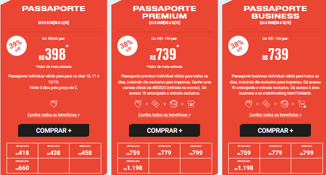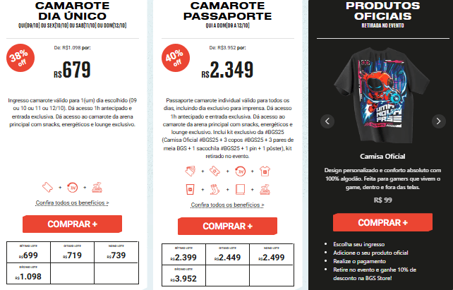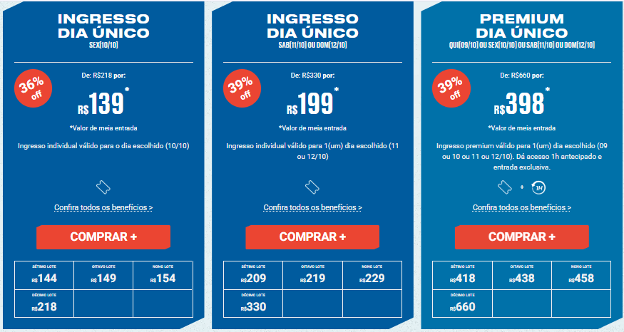 Os ingressos estão no 6º lote, com um desconto de 36% em comparação com o lote final. Você pode adquirir o seu clicando AQUI. Os ingressos para sábado e o passaporte já venderam mais da metade. Portanto, se eu fosse você, já garantiria o meu!