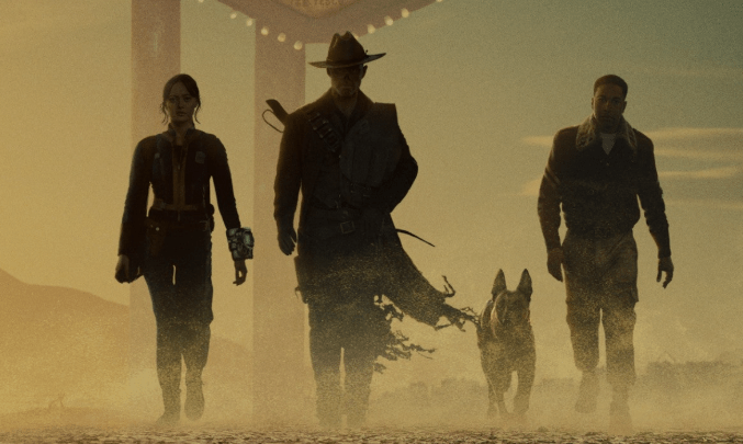 Também vemos cenas de flashback (a 1ª temporada tem muitas delas). Aqui, Cooper Howard, interpretado por Goggins, chega à New Vegas pré-guerra, que inclui o Lucky 38, o resort e cassino de propriedade do Sr. House no videogame New Vegas (temos uma primeira visão de Justin Theroux como Sr. House na 2ª temporada). Cooper parece pronto para um confronto pré-guerra com o Sr. House e sua esposa, vistos pela última vez planejando o fim do mundo.