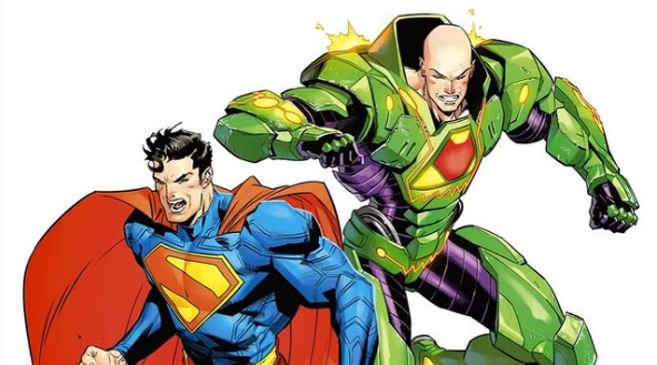 Especificamente, parece o traje anti-Superman de Luthor, daí a kriptonita verde. Superman, aparentemente despreocupado, está se apoiando de brincadeira em Luthor enquanto segura uma chave de fenda. Será que os inimigos ferrenhos que vimos em Superman agora são amigos em O Homem do Amanhã?