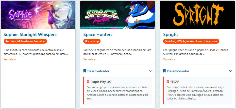 - Visibilidade para desenvolvedores locais: diversos estúdios brasileiros utilizam a BGS Indie para apresentar seus projetos ao público em geral, receber feedback, aprimorar protótipos etc.