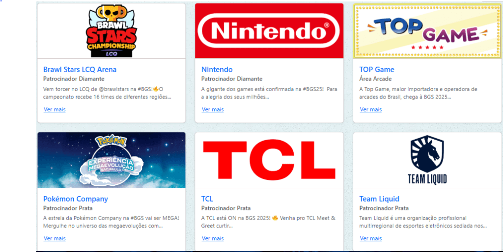 Com mais de 40 marcas patrocinadoras já confirmadas, a BGS 2025 tem tudo para ser um dos eventos mais grandiosos até o momento. Patrocinadores de destaque, como Nintendo e que esta na categoria Diamante, garantem que o evento proporcionará não apenas visibilidade, mas também experiências inovadoras, demonstrações interativas, lançamentos exclusivos e ativações visualmente impressionantes.