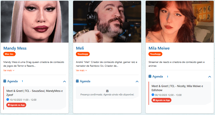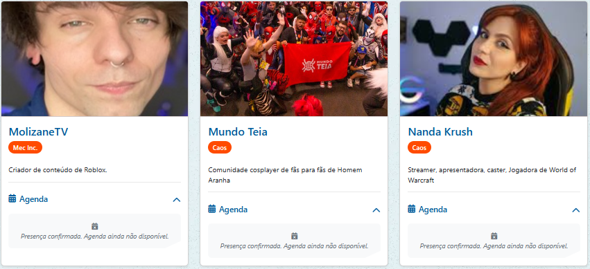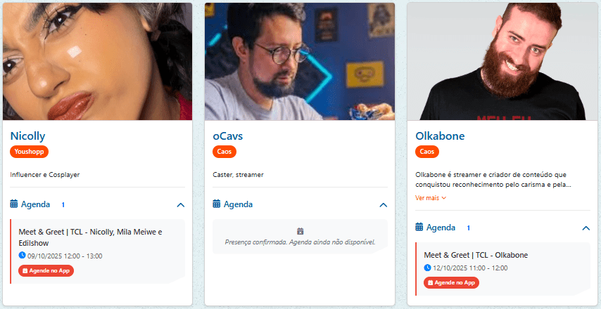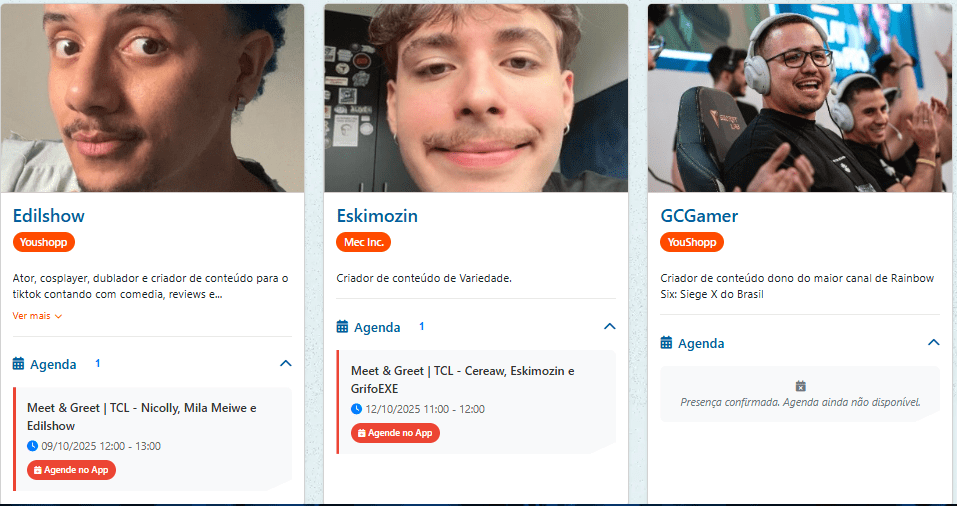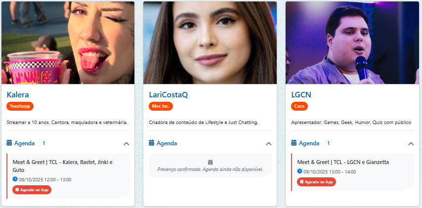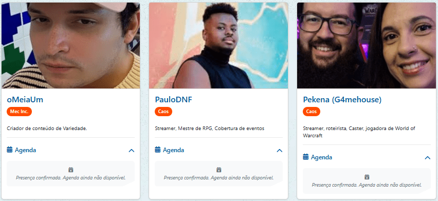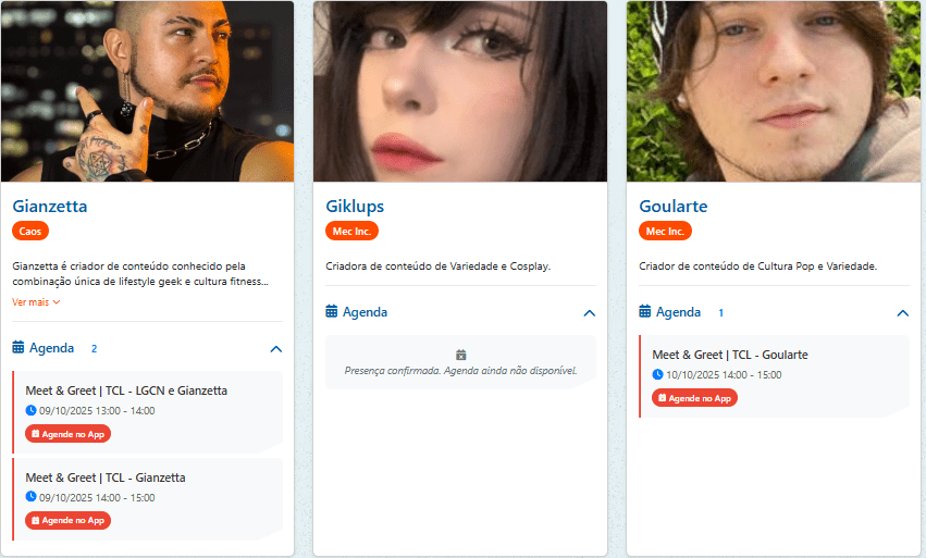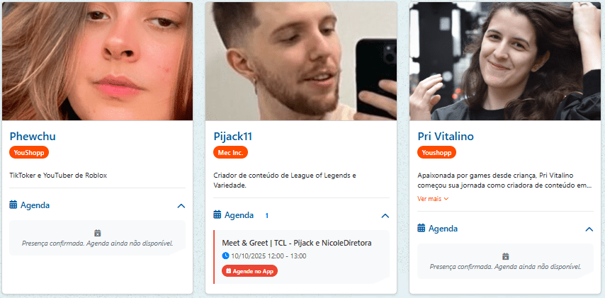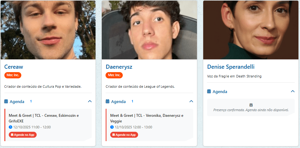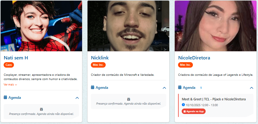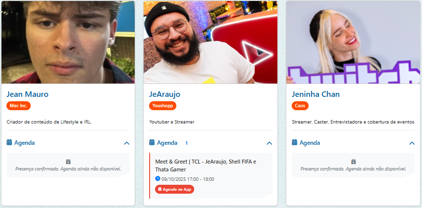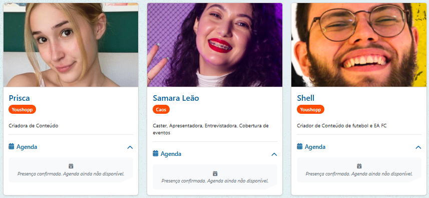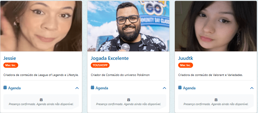 Já entre os criadores de conteúdo brasileiros, nomes como Alanzoka, Flakes Power, Bibi Tatto e Rakin figuram na lista, com participações especiais em estandes, transmissões ao vivo e painéis focados em streaming e cultura gamer.