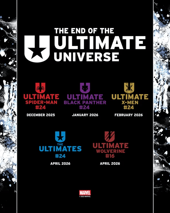 A Marvel já havia revelado que Hickman e Checchetto encerrariam sua série Ultimate Spider-Man com a edição #24 em dezembro. Mas agora eles confirmaram que todos os quadrinhos Ultimate em andamento serão concluídos entre dezembro e abril de 2026. Isso inclui The Ultimates, de Deniz Camp e Juan Frigeri, que ganhou o prêmio de Melhor Série de Quadrinhos ou Graphic Novel Original de 2024 do IGN .