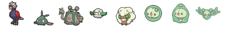 - Sewaddle–(Lv. 20)–>Swadloon–(Happiness)–>Leavanny