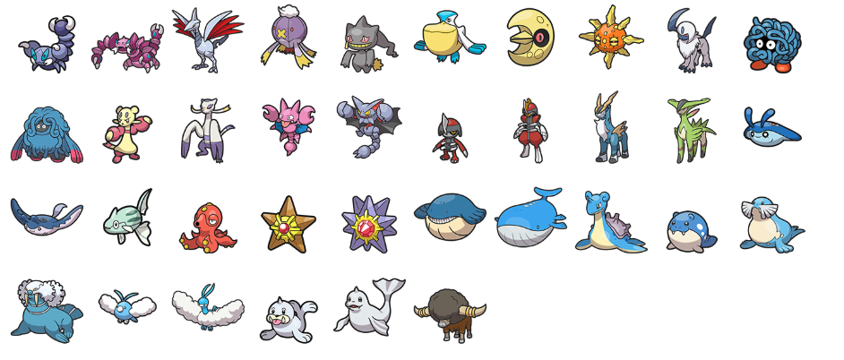 Cidade de Undella e Baía de Undella – Ao sair da Montanha da Reversão, você estará em uma área pós-jogo de Black e White – a Cidade de Undella e sua área adjacente, a Baía de Undella. Dentro da cidade, há uma Pedra Brilhante invisível. Para encontros, você pode usar Surf para encontrar Staryu, que também é encontrado em pontos com ondulações, assim como sua evolução, Starmie, que é exclusiva desses pontos. A baía a leste tem muito mais a oferecer em termos de capturas. Você encontrará Remoraid surfando em todas as épocas do ano, embora seja raro, com uma taxa de encontro de 5%. No inverno, você encontrará Spheal, bem como suas duas evoluções, exclusivamente em pontos com ondulações. Nos outros meses, ele será substituído por Mantyke surfando normalmente e Mantine em pontos com ondulações. Manchas na água também revelam Wailmer e, se você for paciente, Wailord. Há também uma caverna ao norte da baía – a Caverna da Beira-Mar. Ela está bloqueada, mas você pode pelo menos entrar para encontrar um Seel.