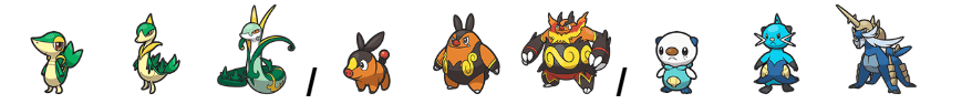 - Oshawott–(Lv. 17)–>Dewott–(Lv. 36)–>Samurott