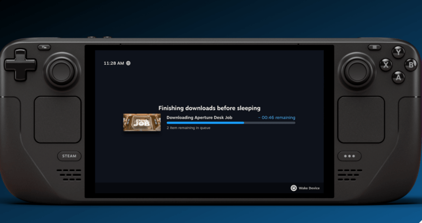 Segundo a Valve, o novo recurso pode ser ativado de duas maneiras. Enquanto o dispositivo portátil estiver baixando conteúdo, os jogadores podem pressionar o botão Liga/Desliga para abrir uma nova caixa de diálogo que pergunta se desejam continuar o download com a tela desligada. Se um Steam Deck ficar ocioso por um determinado período, ele também entrará automaticamente no modo de download de baixo consumo de energia.