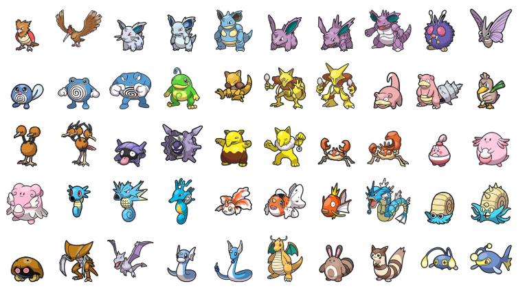 Pokémon diversos não disponíveis no jogo (100):