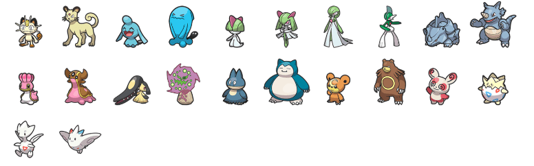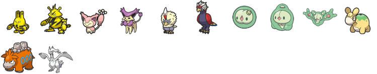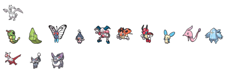 Tudo o que resta. Estas são as famílias de Pokémon restantes que não são encontradas em nenhum lugar nos jogos e exigem a transferência de gerações anteriores para serem obtidas.