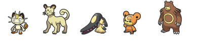- Meowth–(Lv. 28)–>Persian