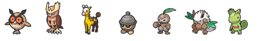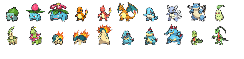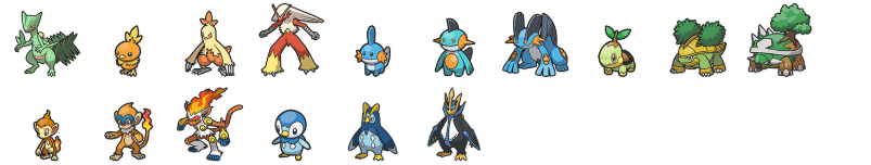Todos os Pokémon iniciais de outras regiões que não são encontrados no jogo sem a necessidade de migração.