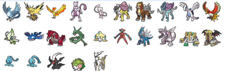 Pokémon lendários/míticos não presentes no jogo (25):