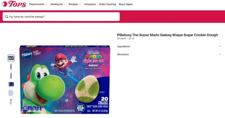 Conforme notado pelo usuário do Reddit TheVideoGameNutt , o supermercado Tops de Nova York listou um novo produto da Pillsbury chamado Super Mario Galaxy Shape Sugar Cookie Dough (Massa de Biscoito de Açúcar em Formato de Super Mario Galaxy).