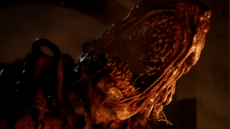 Resumindo, não há como desligar o interruptor de pancadaria do Leon – seu estilo de tiro é impecável, digno de John Wick, e mais sangrento do que nunca – e, além de seu massacre implacável de hordas de zumbis, é também nas fases do Leon que a maior parte dos confrontos épicos contra chefes de Requiem acontece. Há muitos confrontos colossais aqui, desde novos gigantes até ameaças brilhantemente reimaginadas de histórias anteriores de Resident Evil, e não há um único chefe decepcionante do tamanho de Del Lago entre eles. Eu particularmente adorei como o enorme e assustador monstro dentro de uma capela apertada no meio da história subverteu minhas expectativas de como uma luta contra um chefe de Resident Evil deveria ser. Claro, ter a tarefa de explodir os pontos fracos brilhantes que cobrem o torso de um monstro saqueador não é nenhuma novidade. Isso até você perceber que, embora perfurar cada bolha inchada cause dano à fera, também espalha jatos de infecção sobre os zumbis ao redor, transformando-os instantaneamente em reforços mais fortes para você enfrentar. Leon pode estar armado até os dentes, mas isso não significa que Requiem não encontre maneiras criativas de aumentar o desafio.