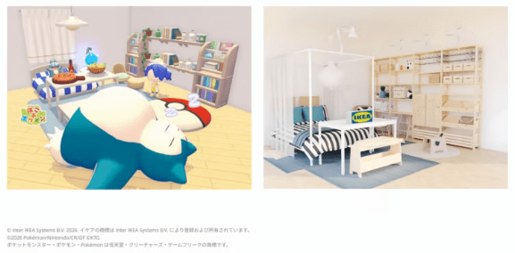 As lojas Ikea no Japão também apresentarão novos ambientes decorados inspirados em Pokémon . Um quarto do Pikachu e outro do Snorlax, que também foram recriados no jogo, estarão disponíveis nas lojas Ikea, embora não pareça que novos móveis licenciados de Pokémon serão criados.
