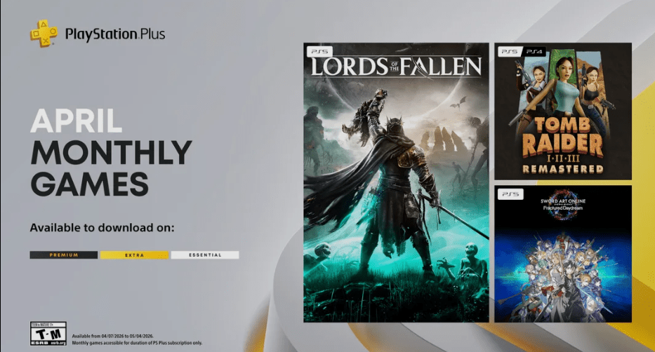 Desta vez, haverá apenas três jogos para resgatar, todos disponíveis de 7 de abril a 4 de maio para membros de todos os três níveis da PlayStation Plus: Essential, Extra e Premium.