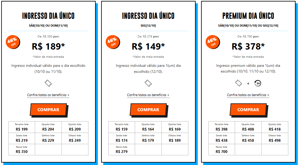 Além dos ingressos, você também poderá adquirir produtos oficiais, como camisetas e itens licenciados exclusivos, na Loja Oficial do evento.