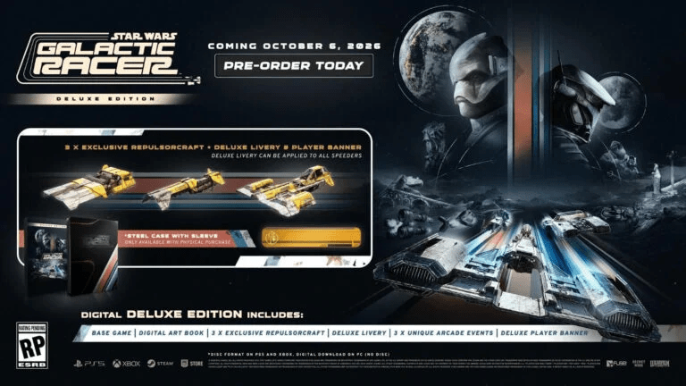 Star Wars: Galactic Racer foi confirmado para lançamento em 6 de outubro, juntamente com uma série de diferentes edições do jogo.